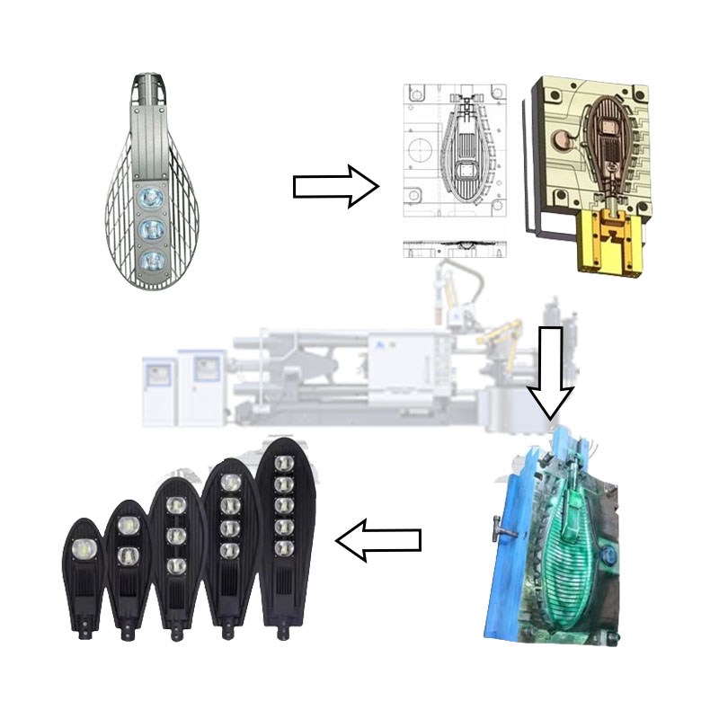 Đèn đường tích hợp năng lượng mặt trời (Khu vực nông thôn, 50-100W) : Hoàn hảo cho khuôn 2 khoang—sản xuất vỏ nhẹ 3kg (để giảm tải cột) với giá đỡ lắp tấm pin mặt trời tích hợp. Một dự án chiếu sáng nông thôn ở Kenya đã đặt hàng 1.500 đèn đường năng lượng mặt trời— độ chính xác của khuôn đảm bảo các tấm pin mặt trời được căn chỉnh với bộ điều khiển sạc, giảm lỗi lắp đặt từ 10% xuống 1%.